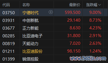 锂电池股大涨,宁德时代涨9%。宁德时代四季度净利润暴增57%,全年狂赚722亿;产能利用率创历史高位103%,欧洲市场份额更从37%跃升至43%。面对锂价飙涨26%的市场恐慌,管理层一句“单位净利润保持稳定”彻底打消疑虑。汇丰、野村等机构集体上调目标价,A股隐含最高31%上行空间。“宁王”2026年增长故事,才刚刚开始。