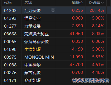 煤炭股涨幅居前,中煤能源涨超5%。东证期货发布研报称,霍尔木兹海峡持续关闭,市场对能源估值预期进一步上移。中东冲突持续期成为最大不确定性。当前海外煤价已经计价1个月左右封锁,关注事态进一步演变情况。煤价外强内弱,中长期估值仍然有上行风险,短期预期震荡市。