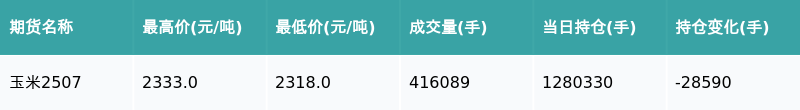 南财智讯5月26日电,南财金融终端盘后期货数据显示众盈易配,大连商品交易所的玉米主力合约收跌0.39%,收盘报2318.0元/吨,日内资金流出1.09亿元。其他相关指标见下表: